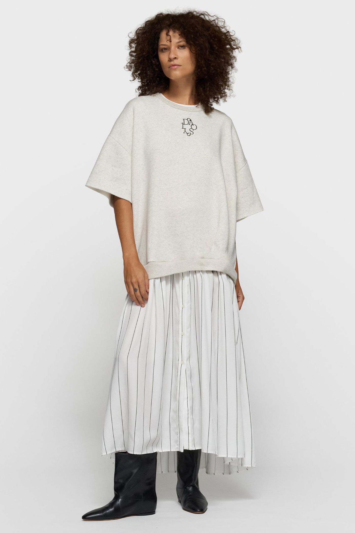 Raffiniertes Oversized fit Sweatshirt-Kleid aus superweicher Babyfleece-Baumwolle mit Rundkragen, Statement Stick, überschnittener Schulter am Kurzarm-Oberteil sowie schönem Streifenmuster und durchgehender Knopfleiste am unteren Rockteil aus leichtem Twill