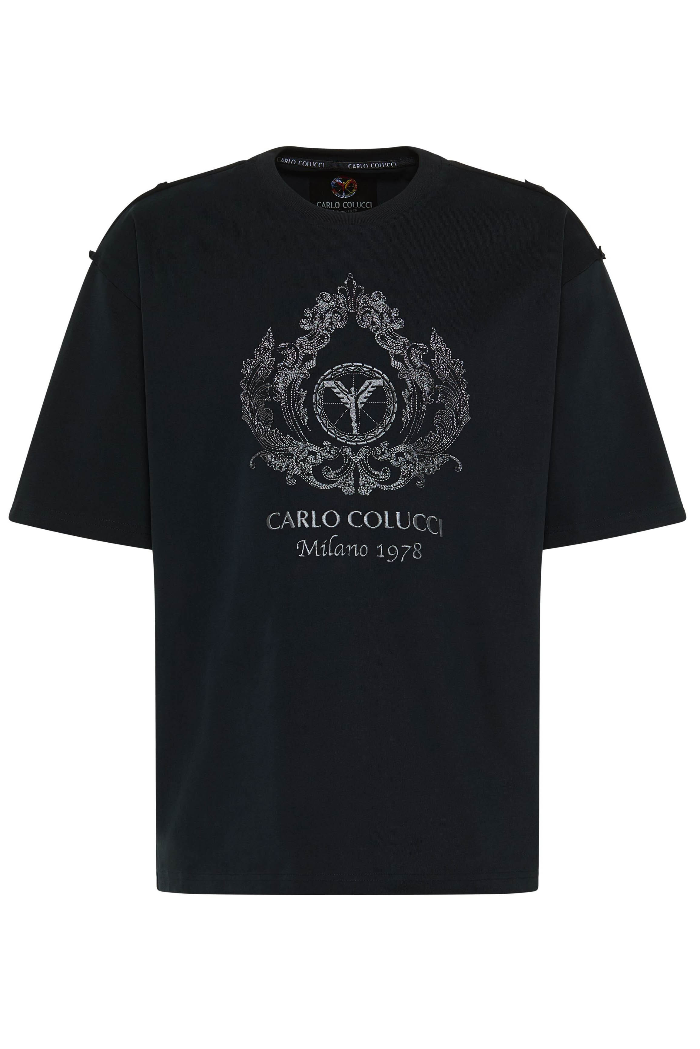 Edles Carlo Colucci Oversize-Shirt aus reiner Baumwolle mit Rundkragen und aufwendigem Stick-Logo im Wappen-Stil
