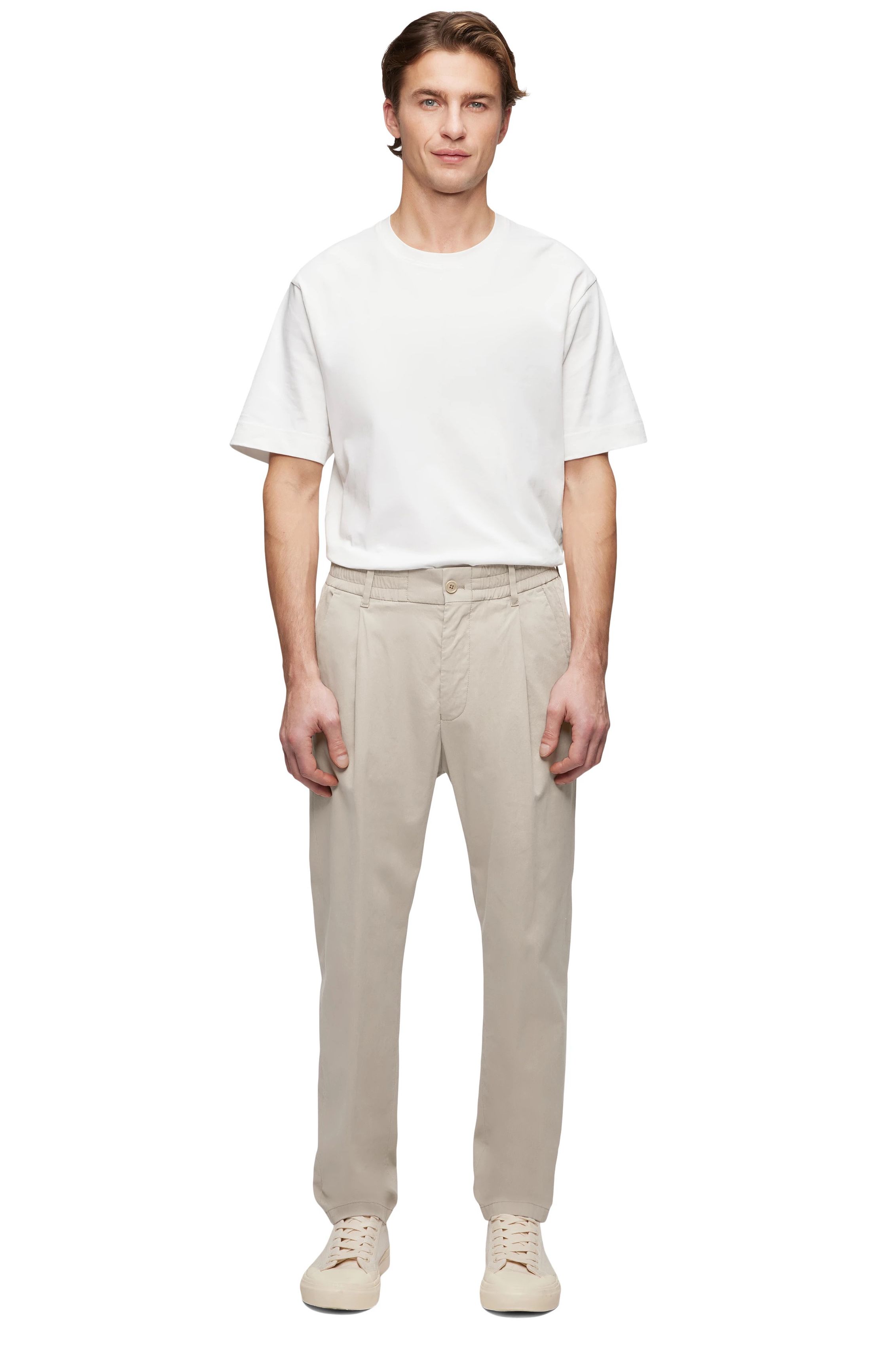 Gerade geschnittene, sportive Hose mit klassischem Touch im soften Baumwoll-Viskose Mix mit elastischem Bund, Bundfalten sowie konisch zulaufendem Bein mit verkürzter Länge