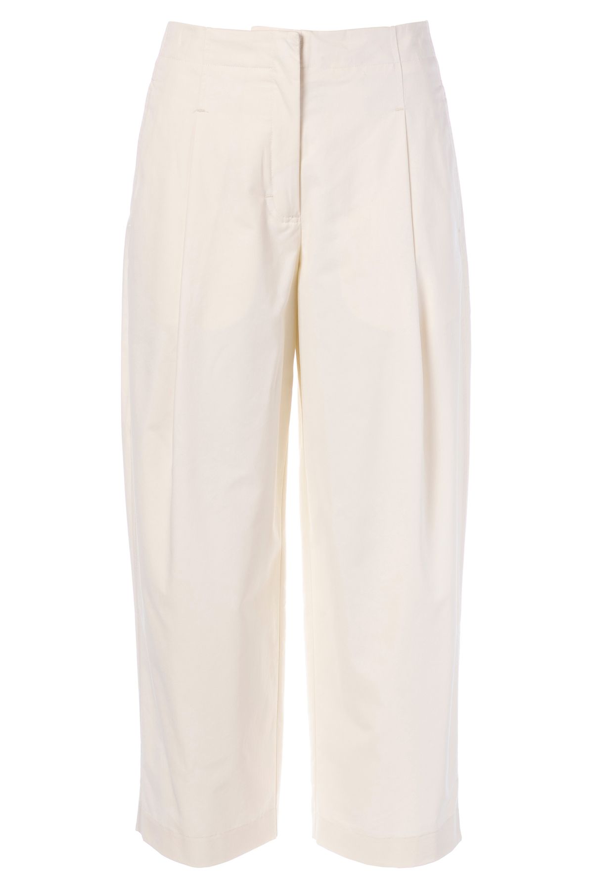 Locker fallende High Waist Hose aus reiner Baumwolle mit fixierten Falten am Bund, seitlichen Eingriffstaschen und weitem Bein mit verkürzter Länge
