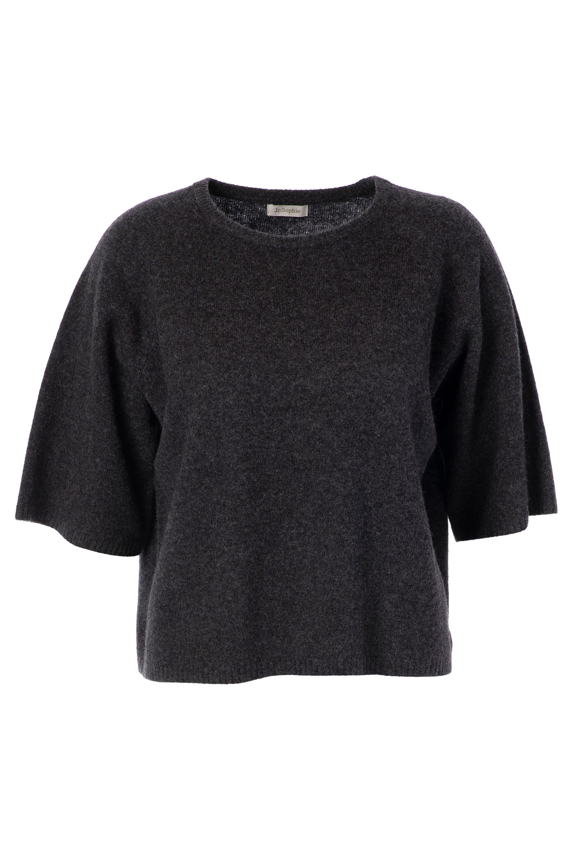 Locker geschnittenes Halbarm-Strickshirt aus reiner Wolle mit Rundkragen, weitem Kurzarm und flauschiger Struktur