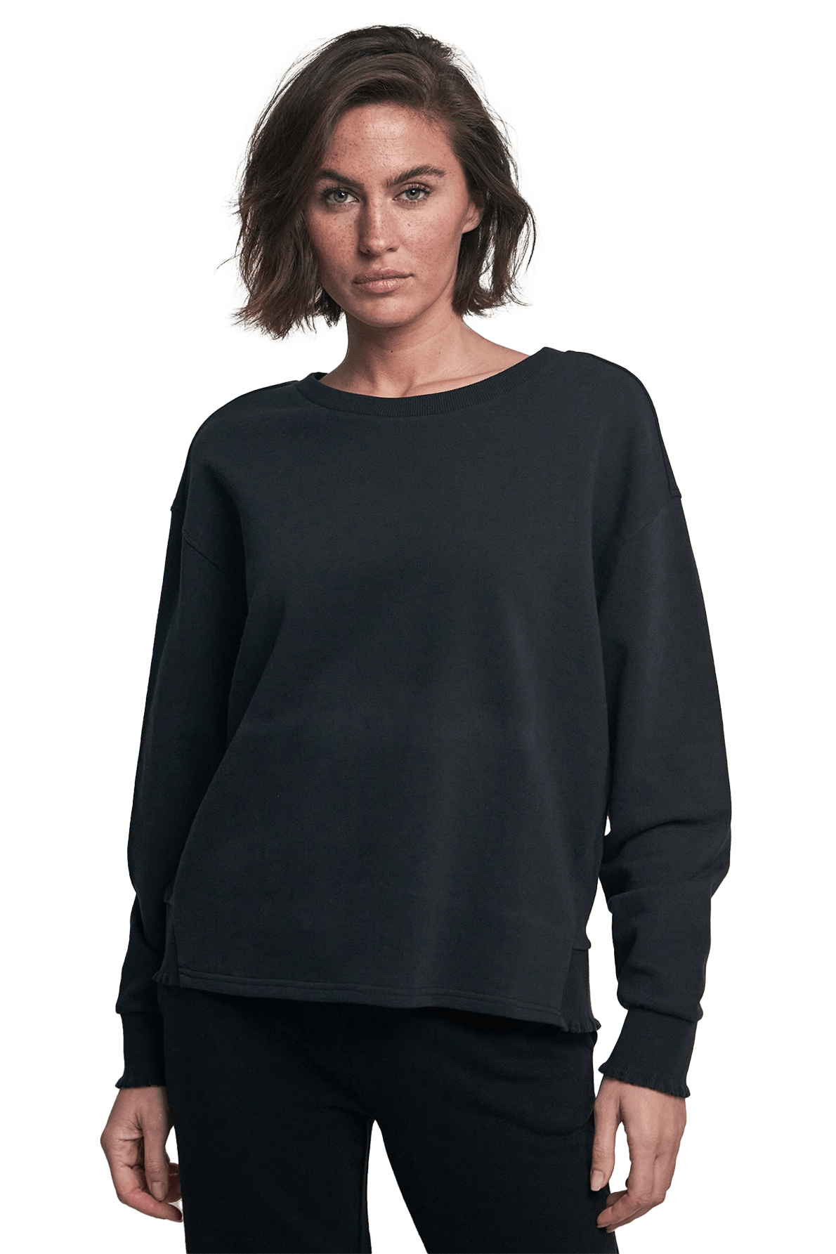 Lässiger Oversize Sweater aus extrasofter Organic-Baumwolle mit weitem Rundkragen, überschnittener Schulter, kleinen Rüschen an den elastischen Bündchen und typischer Elefant-Stickerei hinten