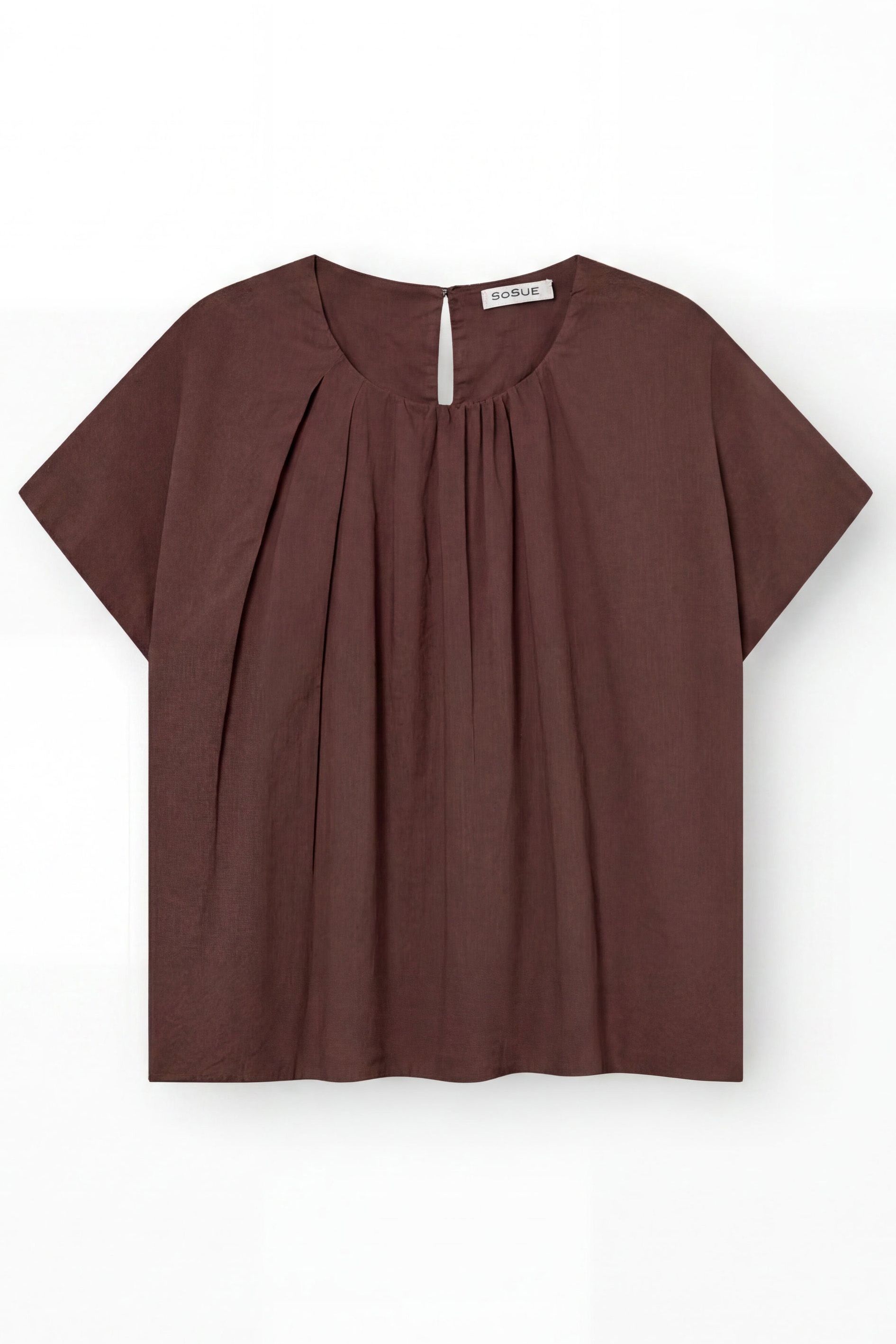 Locker fallendes, gerade geschnittenes Shirt aus leichtem Baumwoll-Voile mit weitem Rundkragen, feinen Raffungen am Ausschnitt und schrägem Kurzarm